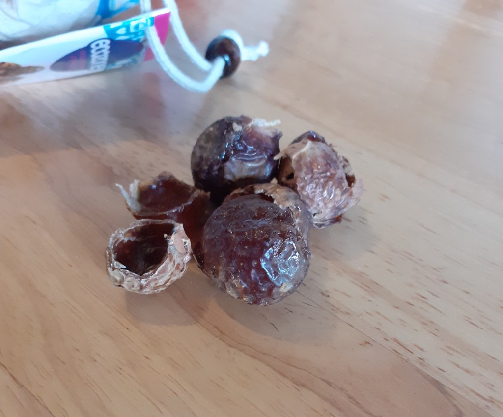 Now, historically soap nuts have been used for clothes washing by tribal people groups, to dye silks, and to make soap. More recently, eco-type peoples have been using them to wash their clothes, and they claim that they’re just as good as modern washing methods. Now this I am sceptical of BUT, according to Wikipedia, soap nuts may have ‘surfactant-like’ properties generated by the ‘saponin’ element in them. They also have a bit of a following in the eco-world, however of the two friends I know who have tried using them, only one of them says they work. Given this, I figured a third test was needed. And so here we are.